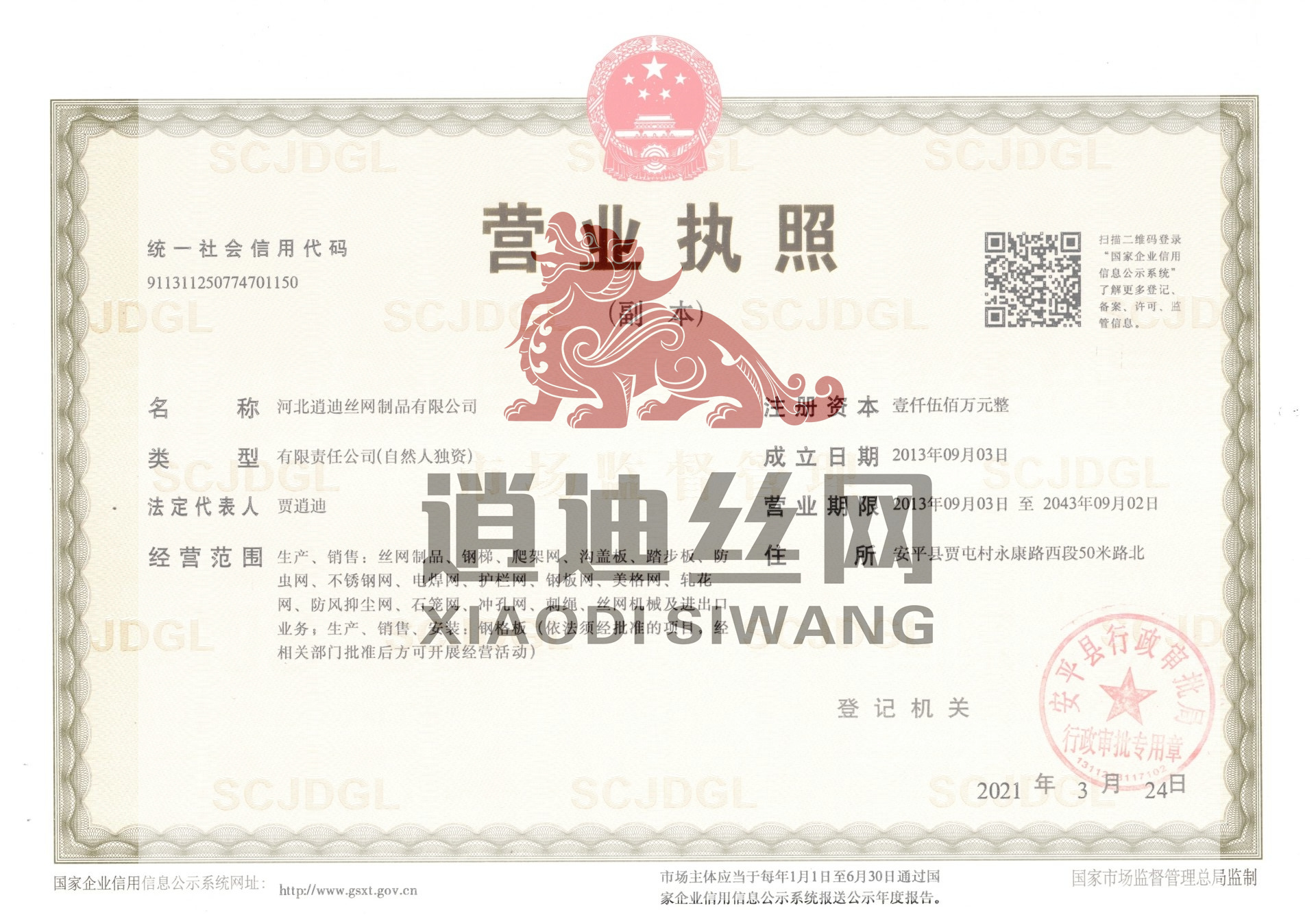 河北逍迪絲網(wǎng)制品有限公司誠信天下,誠信是我們公司一個原則問題不可撼動的,以心中有誠信的思想結交五湖四海的朋友,能達到雙贏是最好的,我們堅信朋友多了路好走,我們公司都是老朋友多,我們一直是這樣做的。河北逍迪絲網(wǎng)制品有限公司成立于2013年注冊資本壹仟伍佰萬整,主要生產(chǎn)沖孔網(wǎng),鋼格板,金屬防蟲網(wǎng),如實的實體廠家,是一家-研發(fā)-銷售-生產(chǎn)-安裝-售后一條龍公司,2019年通過了ISO 9001認證管理體系符合GB/T 19001-2016/ISO 9001:2015標準,同時通過了SGS認證,擁有商標版權2品牌,擁有一個著作版權,河北逍迪絲網(wǎng)制品有限公司位于中國有名的(絲網(wǎng)之鄉(xiāng))安平縣,于天津,北京,雄安,石家莊相鄰,交通非常發(fā)達,出口可以選擇天津港口非常近每天都有接貨送貨往返車輛,空運可以選擇石家莊正定機場,附近也有鐵路運輸,當?shù)剡€有兩個生態(tài)物流園區(qū)發(fā)往全國各地,我們沖孔網(wǎng)工廠生產(chǎn)設備有:普通沖壓機,高速沖壓機,自主研發(fā)小微孔沖壓機,龍門沖,磚塔沖孔,重型沖孔機,萬瓦級別激光切割機,3000W激光切割機,焊接設備,折彎機,校平機,剪板機,精密校平機,(對板面平整度要求苛刻的客戶群體0.5-0.2誤差)我們公司銷售市場沒有局限性國內國外都供應,擁有出口權...